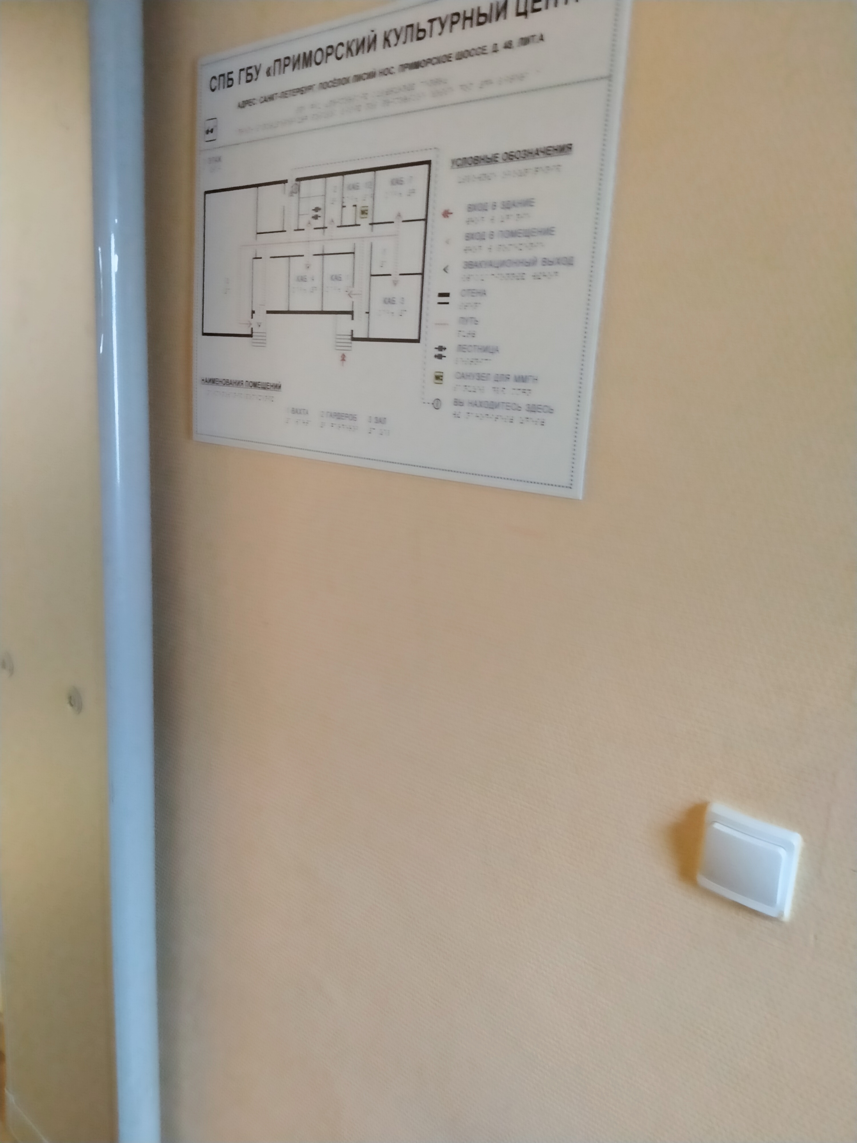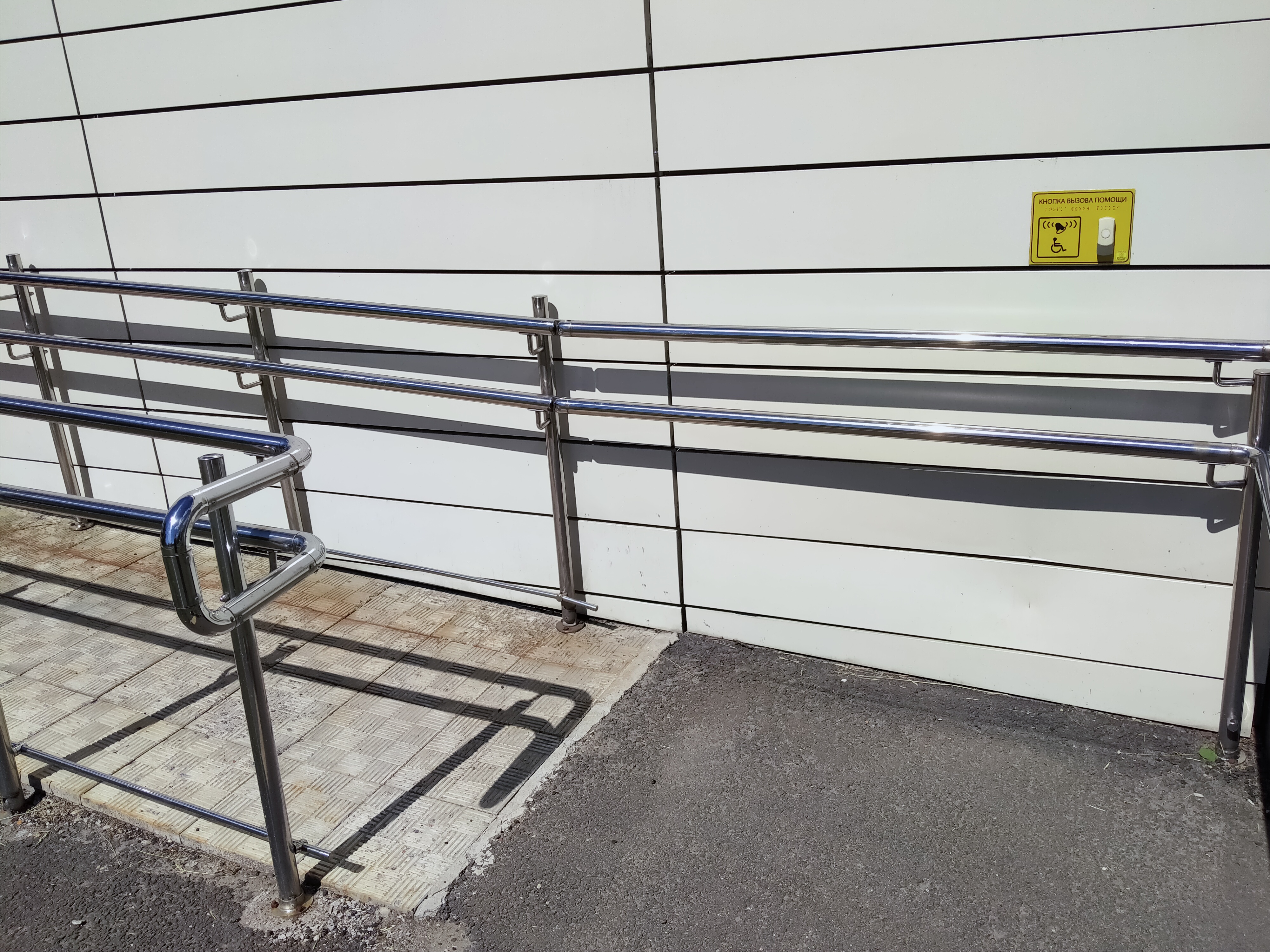 - Справа при въезде на пандус расположена кнопка вызова сотрудника учреждения для оказания помощи инвалидам всех категорий (сопровождение до места оказания услуги). Также указан номер телефона +7 (812) 434-94-59, по которому можно позвонить для получения помощи.