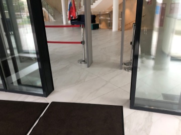 Основной вход в здание находится с Ланского шоссе, оборудован кнопкой вызова персонала и пандусом.