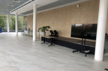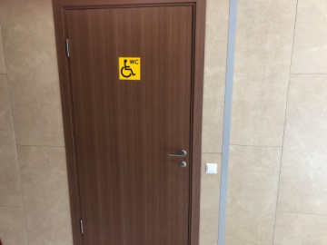 - Таблички с названиями помещений продублированы табличками, исполненными шрифтом Брайля.