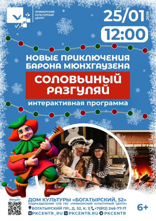 Интерактивная программа «Новые приключения Барона Мюнхгаузена» в ДК «Богатырский, 52»