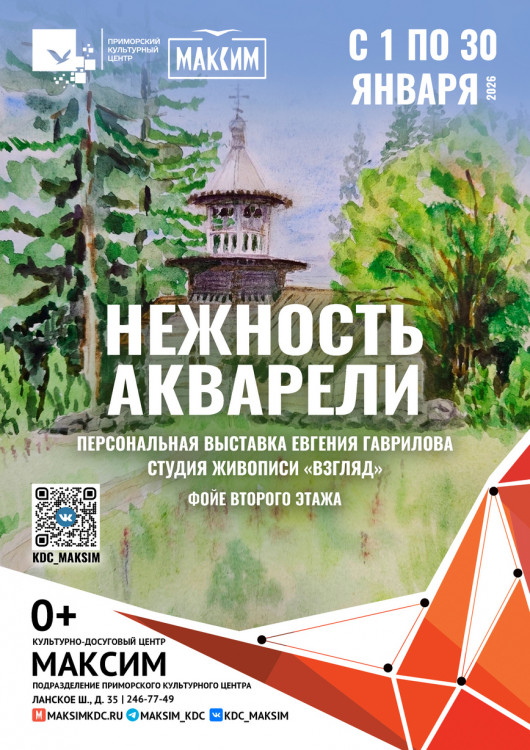 Выставка «Нежность акварели» в КДЦ «Максим» с 1 по 30 января 2026г.